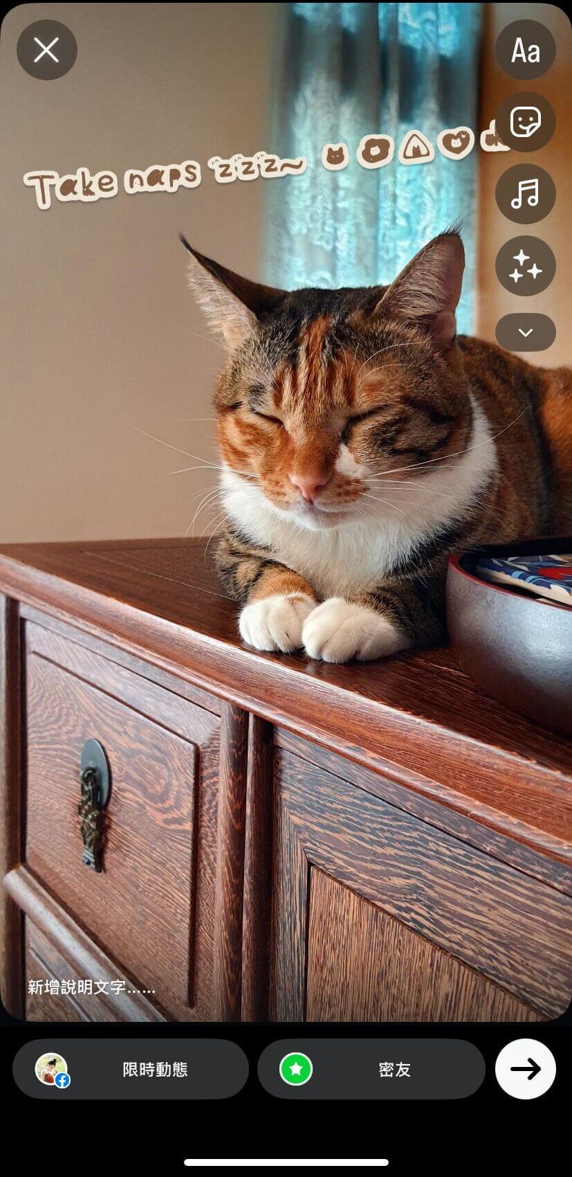 - 編輯文字內容,點選右上角的【複製】,可在限時動態中貼上使用。