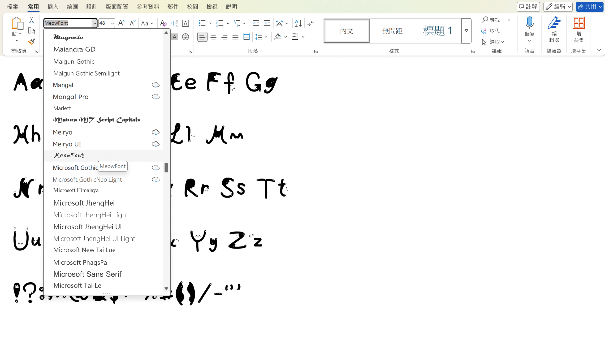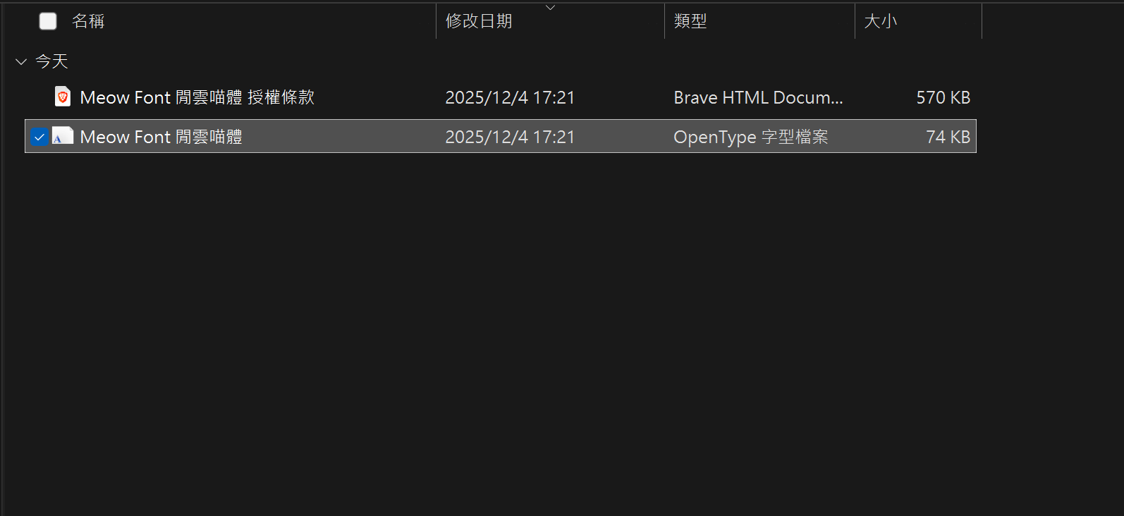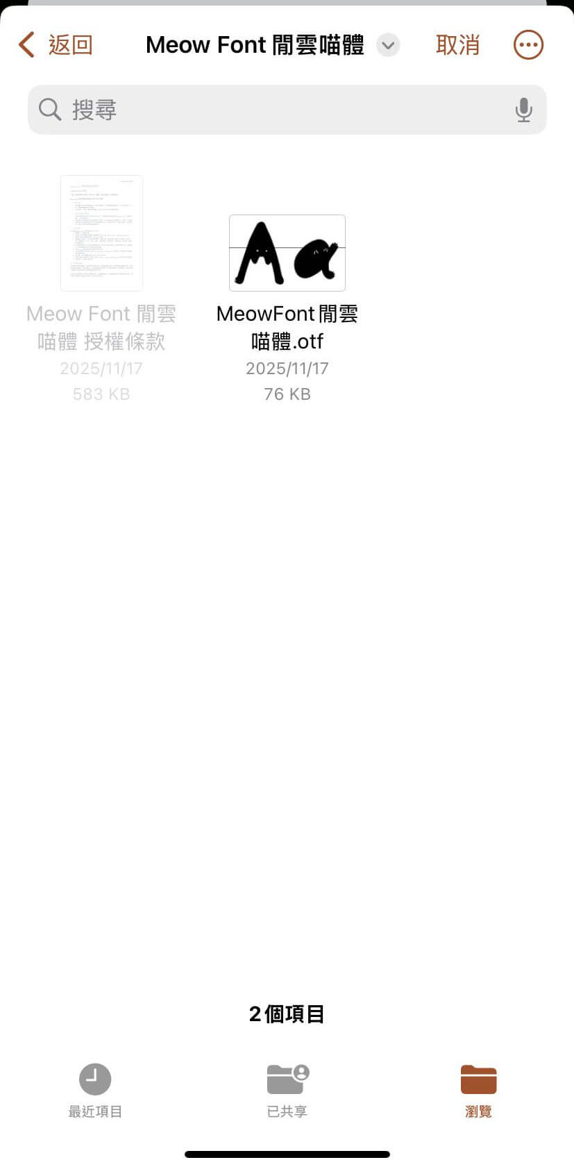 - 【從檔案選取字體】> 找到【Meow Font.otf】檔案